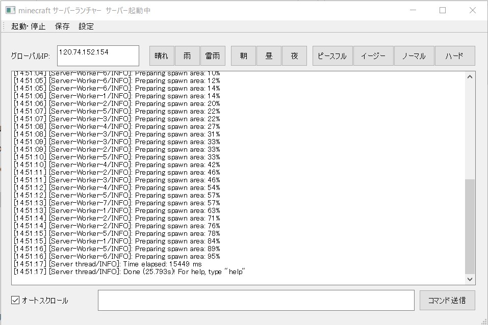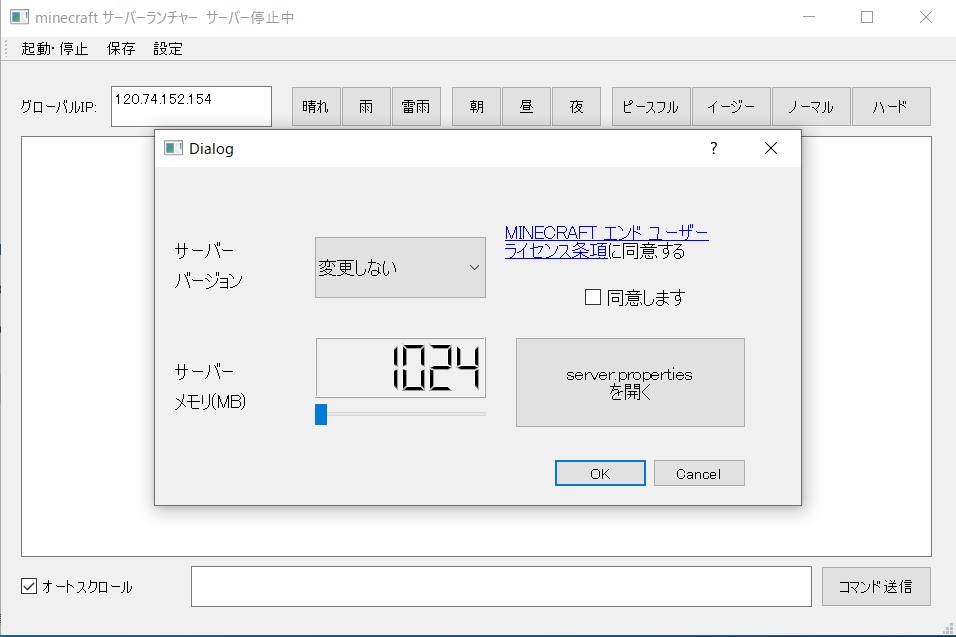 「server.propertiesを開く」は一度サーバーを起動しなければ開けません。 okを選択すると、構築が開始されます。インターネットの状況によっては時間がかかる場合があります。