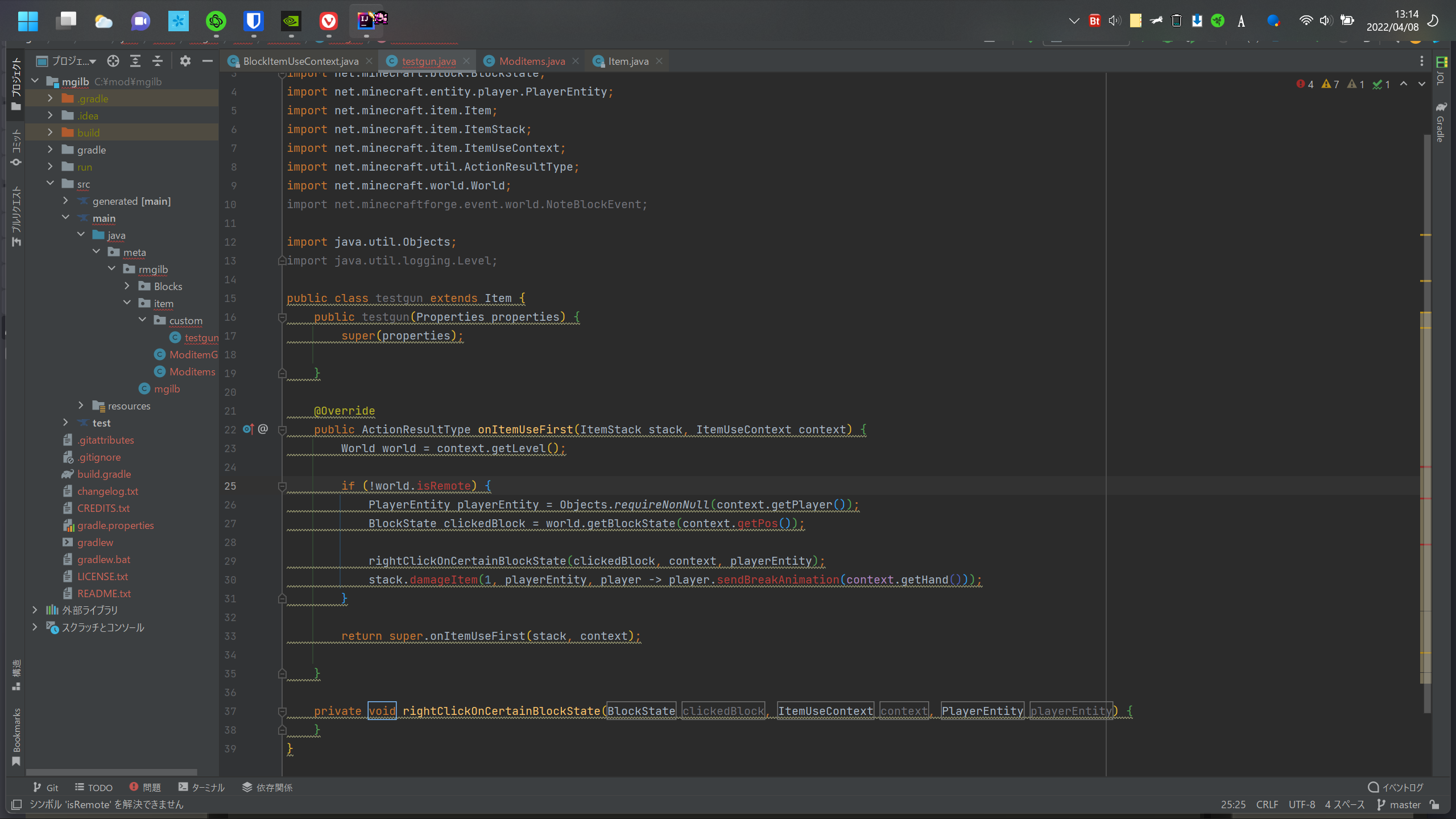海外のサイトや動画を見ながら、1.16.5のmod作成をしていて。